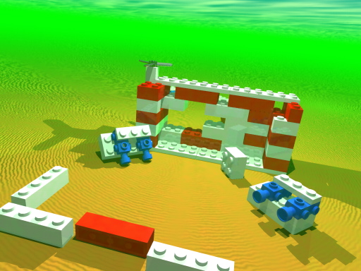 “Lego Ruins” was one of the first cool images I made with the Persistence of Vision raytracer. It owes much to Anton Rave’s work making Lego objects for POV. If you are a Lego fan, he has some great Lego art at his web page. Take a look!